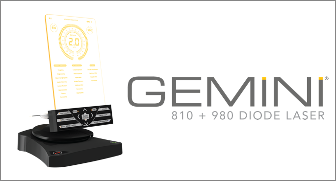 Gemini 810 + 980 es el primer láser de diodo para tejidos blandos provisto de una longitud de onda dual y con una potencia máxima de 20 vatios. El diseño elegante e innovador de la pantalla electroluminiscente y su sencilla pieza de mano con iluminación le identifican como la última generación de láser de diodo.